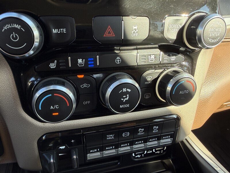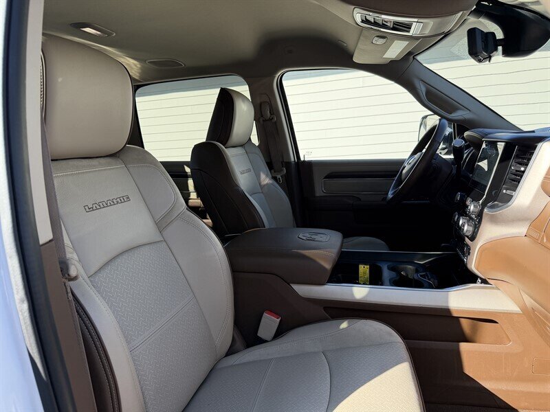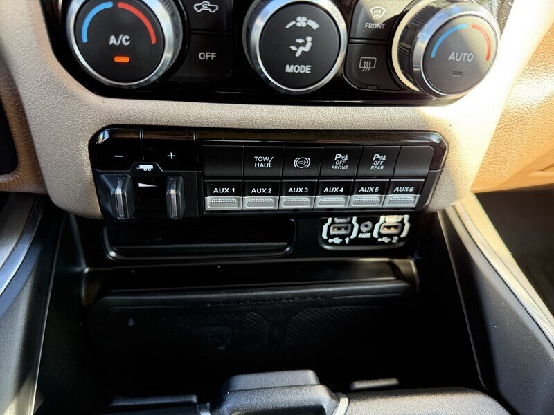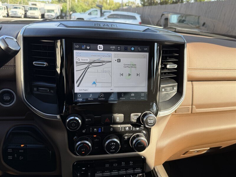 - Laramie Level B Equipment GroupIncludes 8.4 inch touch screen display, Apple Carplay, Android Auto, Alexa built-in, AM/FM radio, HD radio, integrated voice command with Bluetooth, media hub with USB and auxiliary audio inputs, GPS navigation, SiriusXM satellite radio with Traffic Plus, Travel Link and Guardian, 4G LTE Wi-Fi hotspot, dual zone automatic climate control air-conditioning, Harman Kardon 17 speaker audio system with 750 watts, automatic high beam headlamp control, rain-sensitive windshield wipers, power folding heated exterior tow mirrors, auxiliary mirror-mounted reverse lamps, 2-driver memory for driver seat, radio, exterior mirrors, and pedals, ventilated front seats, heated second row seats, and remote tailgate release.